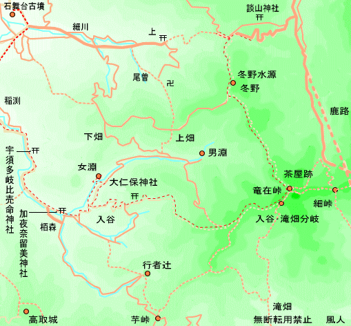 入谷(大仁保神社) → 女淵 → 栢森 → 稲渕 → 石舞台公園