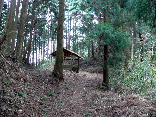 ここが、細峠への分岐になる所です。小屋には、本居宣長の菅笠日記の一文や壬申の乱に纏わる万葉歌の解説などが書かれた案内板が掛けられています。