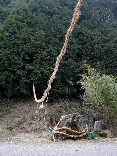 暫らくの休憩の後、1月11日に架け替えの済んだばかりの女綱・男綱をくぐり、最終地点の石舞台公園に向かいます。