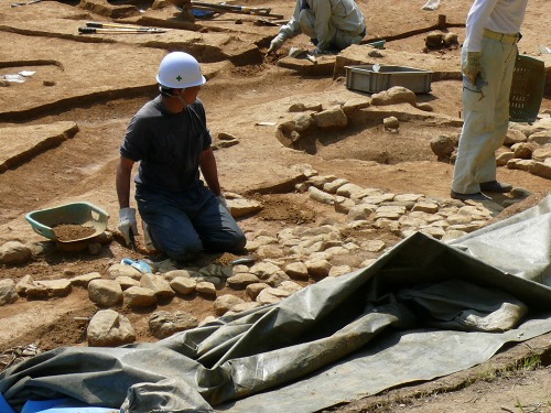 他の時期のものとしては、7世紀後半の石組み溝が検出されたようです。これまでの調査でも、7世紀を通して遺構が存在しており、何度も改変されながら、この地が活用され続けたことを物語っています。