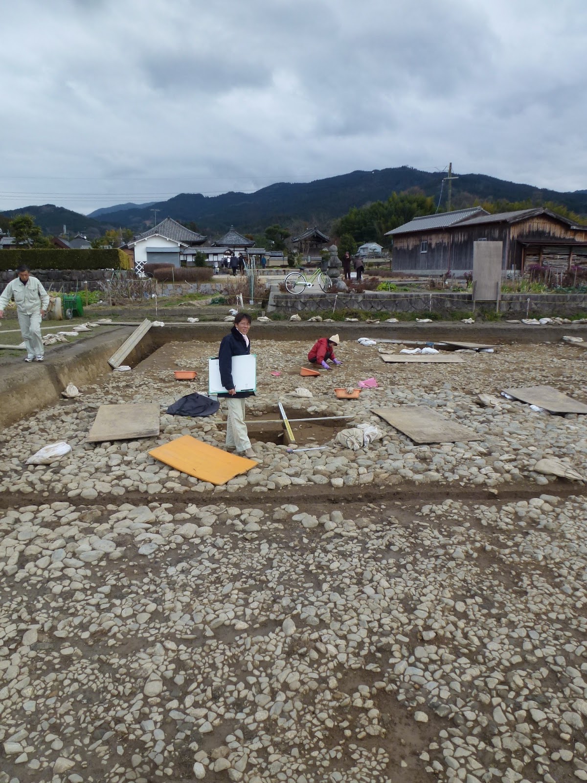 南池の東岸・南岸を検出し、南池の石造物へとつながる導水施設の存在が明らかになりました。