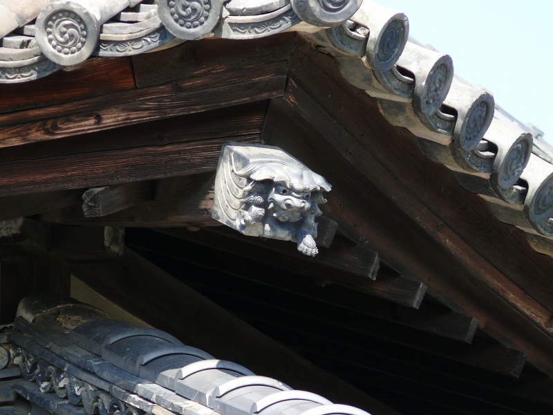 法然寺は、時代的には関係が無いのですが、このお寺の屋根に注目♪ 面白い瓦が乗っかっているのです。瓦展示会場のようなお寺。(笑)道具瓦を実際に見ながらこんな瓦だよと見てもらうために、屋根だけ見つめます。(笑)